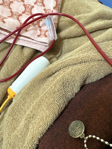 ほら↓ 、末端からじゃなくて 胸のポートから針を刺して