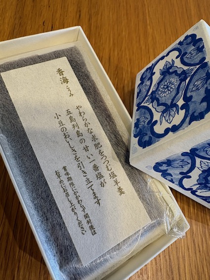 やわらかな 求肥 と 甘い 一番塩 だってー。
