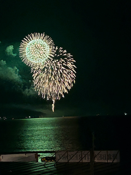 ...昨夜は 葉山。 葉山の花火大会でした。森戸海岸と一色海岸、ふたつの場所から 打ち上げ花火と水中花火が上がりますよ。森戸海岸がメイン会場です。 なぎさハウスリビングから 鎌倉花火は真正面! 12時の方向...